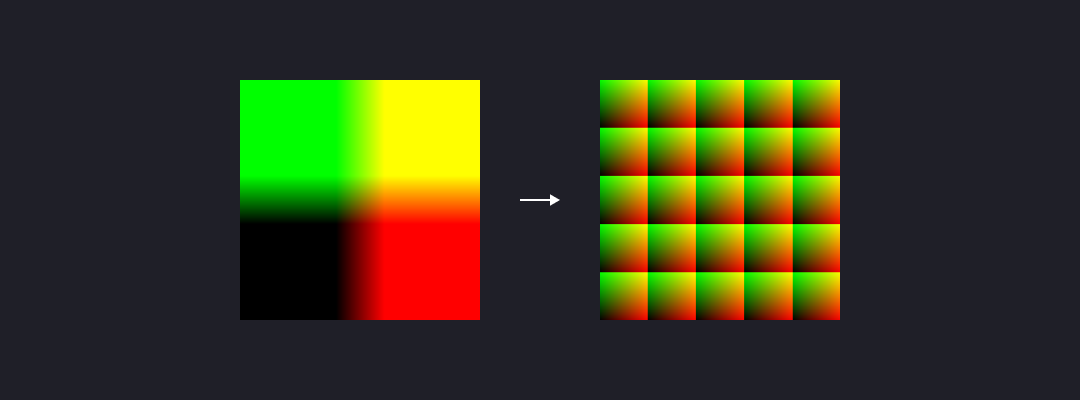첫 단계는 frac() 함수를 통해 UV값이 특정 범위에서 반복되도록 만들어주는 것입니다.